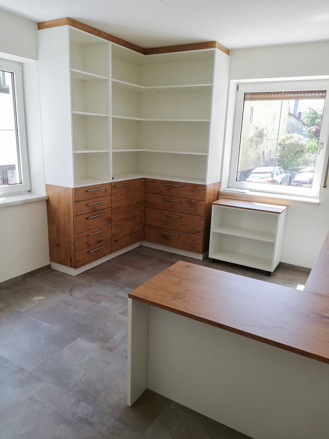 Wenn Standardmöbel nicht passen, realisieren wir individuelle Maßanfertigungen, die sich funktionell und optisch perfekt in Ihre Räumlichkeiten einfügen. Jedes Stück wird mit handwerklicher Sorgfalt für Sie gefertigt.
